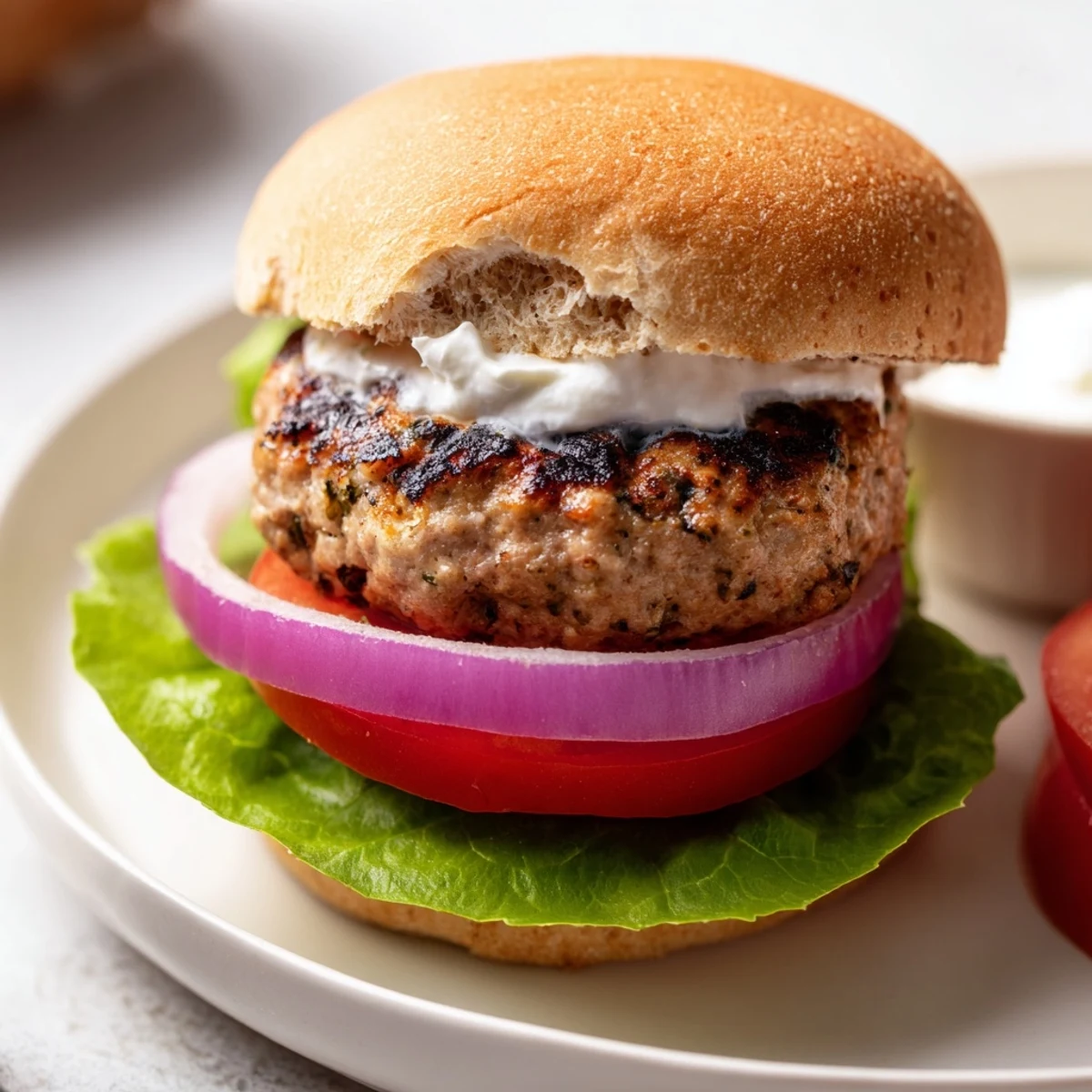 For dairy-free options, try dairy-free yogurt alternatives, hummus, mashed avocado, or your favorite sauce. The Greek yogurt adds creaminess and tang similar to traditional burger toppings.