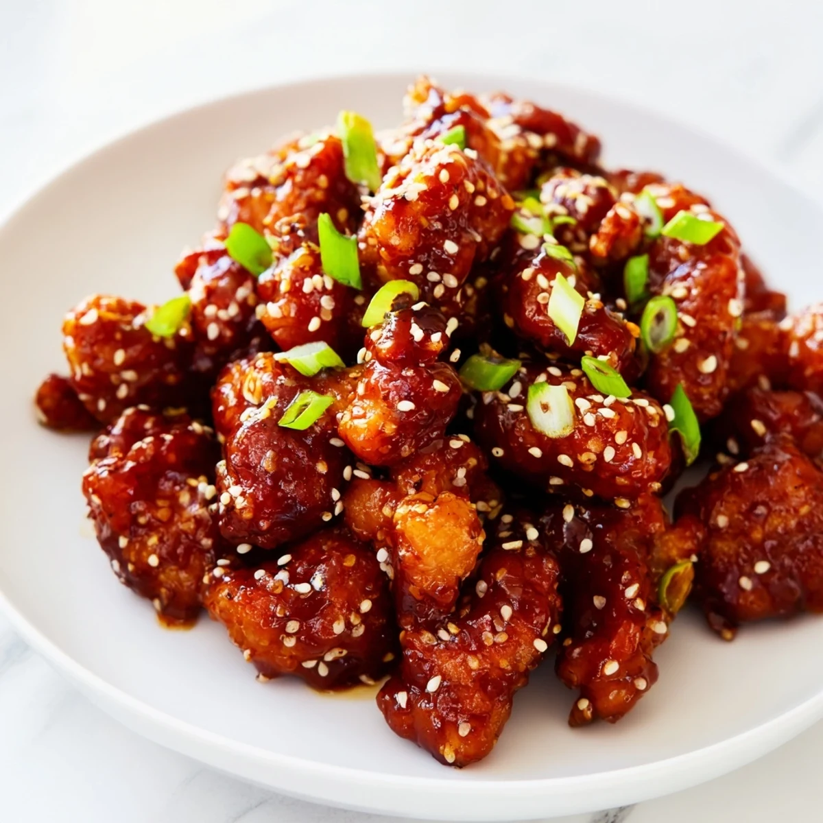 This dish comes together in under an hour and serves four generously. The sauce thickens beautifully as it simmers, creating that signature restaurant-style glaze that clings to every piece. Top with fresh green onions and sesame seeds for added texture and visual appeal.